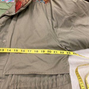 Julia Michaels Womens Jacket Green Floral Zip Up Drawstring Zip Up Mock Neck L