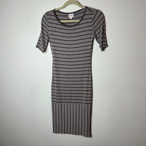 Julia Midi Gray-Stripe Short Sleeve Pullover Stretch Bodycon Dress XXS