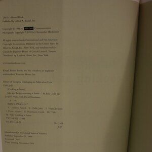 This cookbook by Julia Child and Jacques Pepin is in good condition. No writing or marks were noted in the book. Some light damage to the dust jacket is noted.