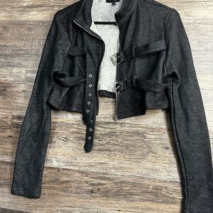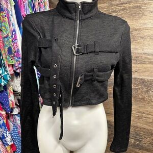 Julia by Love J Chic Black Utility Cropped Zip Jacket for Women