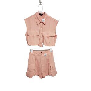 Julia by Love J Crepe Knit Cargo Shirt and Shorts Set in Coral - Size Medium
