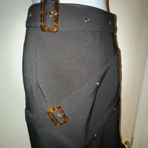 Julia by love J Women’s Medium Elegant Black Maxi Skirt with Buckle Details