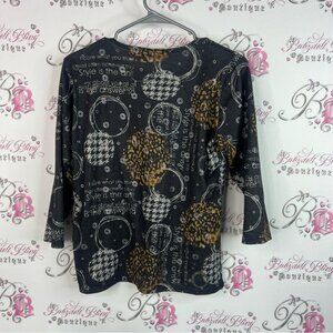 Julia divina long sleeve shirt Black and Gold Graphic Blouse writing