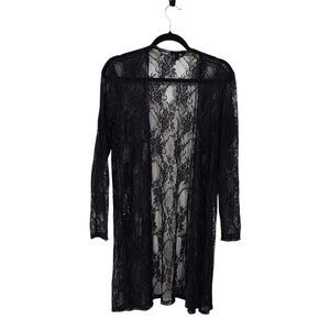 Julia by Love J black florallace open front long sleeve excellent condition 12" side slits 21" pit-pit 35" long