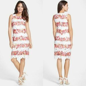 Julia Jordan Floral Lace Shift Dress 14 White Pink Multicolor