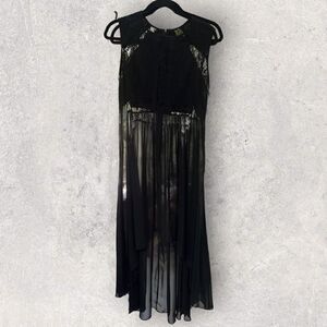 Does not have a size tag , or materials tag . Dress is sheer so I removed them . I know it’s a size us 10 tho.