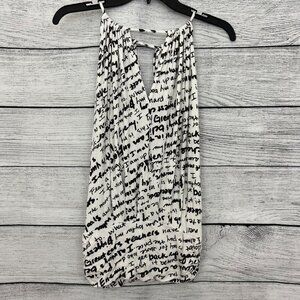 Julian Chang Text Print Sleeveless Keyhole Tank Top Size M