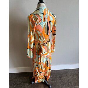 Julian Chang Womens Long Sleeve Abstract Print Wrap Maxi Romper Dress Size S