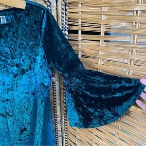 This Julian Taylor dress is designed in a captivating green hue, ideal for a cocktail night out. The elegant sheath style is enhanced by 3/4 bell sleeves and a sophisticated bateau neckline, creating a chic and refined appearance. Pit to pit measurement is 22 inches. This dress does not photograph as green as it truly is. Gorgeous garment!! Fairycore, whimsigoth