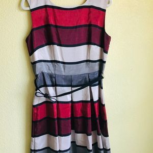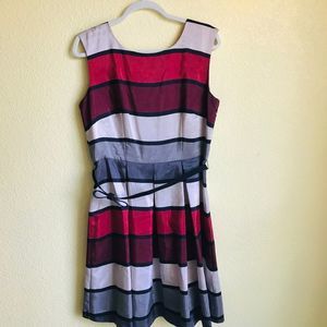 Julian Taylor Multicolor Stripe Belted Fit and Flare Dress Size 12