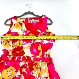 Julian Taylor New York Vintage silhouette dress under the belt at the back is zipped and has two pockets in the colors yellow Color white and pink is made up of 97% Cotton 3% Spandex Pre-owned good Condition