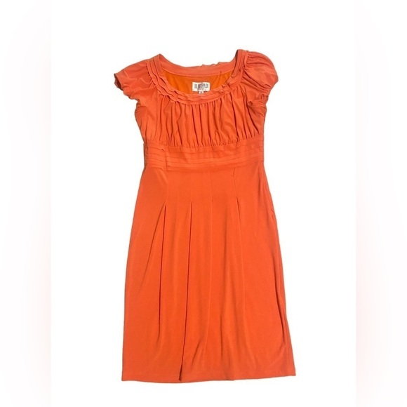 Julian Taylor Orange Pleat Embellished Midi Dress-size 14
