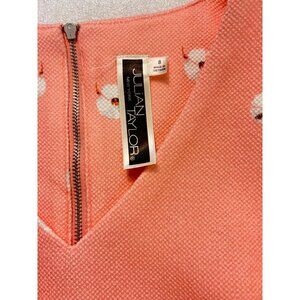 Julian Taylor Pink Flamingo Print Sleeveless Shift Dress V-Neck Back Zip SZ 8 fi