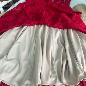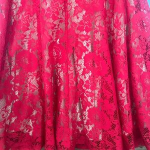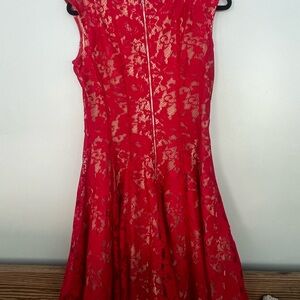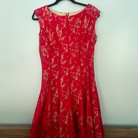 Julian Taylor Red Sleeveless Fit and Flare Lace Overlay Dress