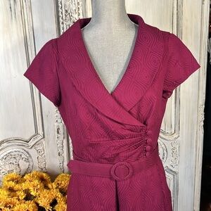 Julian Taylor Vintage Look Waisted and Belted Short Sleeve Faux Wrap Dress S/12