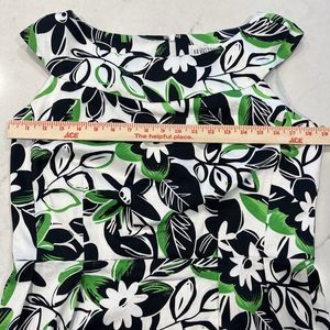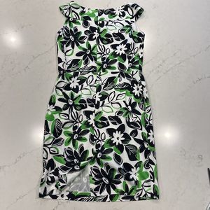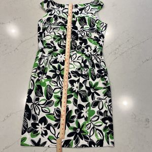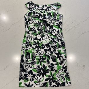 Julian Taylor Womens Floral Tropical Grn Wte Blk Sheath Dress Knee Length Sz L ?