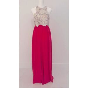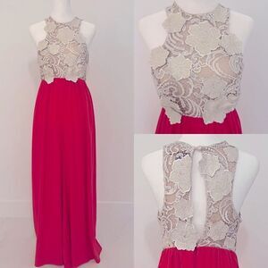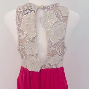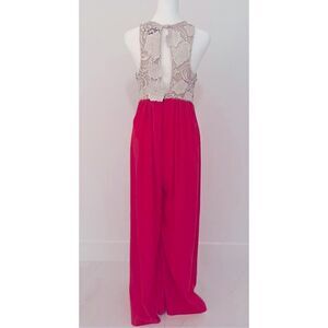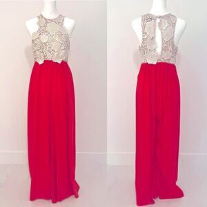 Julian Chang Jumpsuit Coral White Lace Floral Keyhole