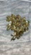 Elster) brooch set with light citrine-color navette unfoiled and open back rhinestones in the shape of a leaf/ branch with a curved stem of aurora borealis stones along the center. unsigned.