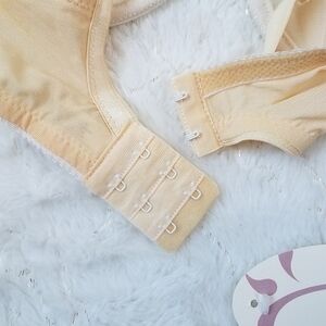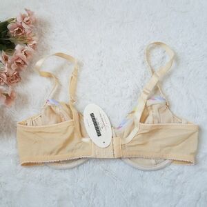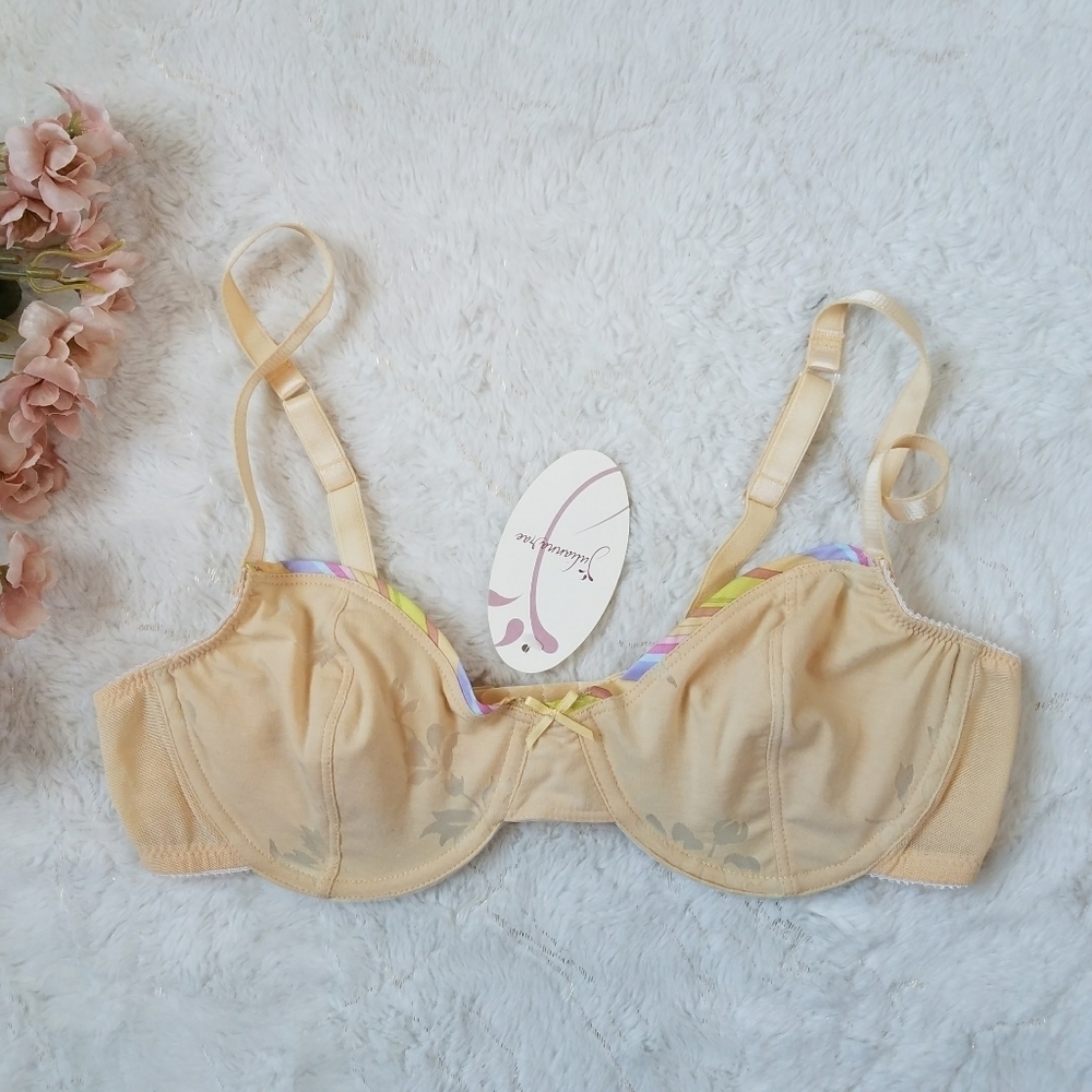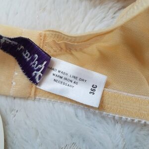 NWT, light yellow with floral lace imprint, no padding/wired, adjustable straps, size 36C.