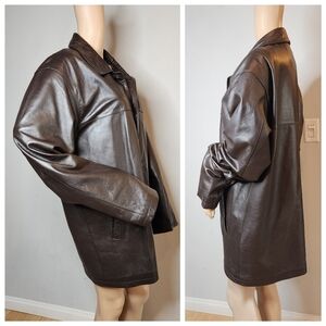Juliano Celini brown leather jacket. Button front. Pockets. Women's size XL.