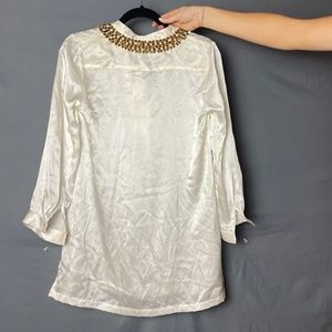 This is a Silk CharmeuseJulie Brown top with gold and brown sequins and beads.
