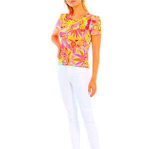 Julie Brown Marty Amalfi Floral Print Crew Neck Short Puff Sleeve Tee Large NWT