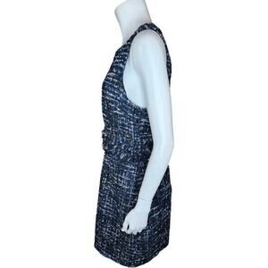 Julie Brown NYC Sleeveless Dress Lori Blue Oxford Tweed Fringe Metallic Size 8