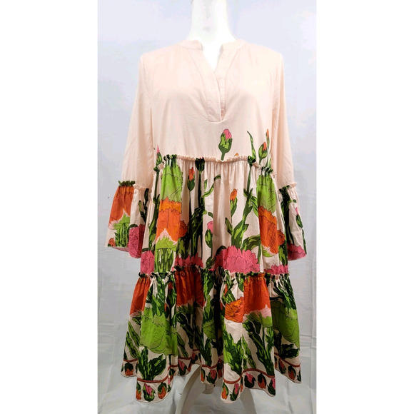 Julie Brown New York Ruffle Bell Sleeves Floral Dress Women Size L White Lotus