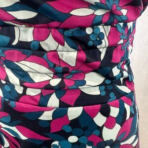 Halter style top. Multi banded elastic waist for a flattering fit. Zipper back. Euc