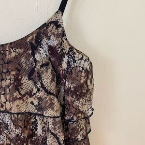 Julie’ Closet Layerd Ruffle Dress. Brown/Tan. Sz S