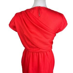 Julie Dillon Red Orange Textured Satin Crossover Sash Short Sleeve Sheath Dress