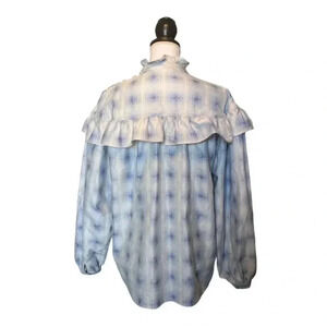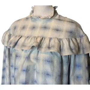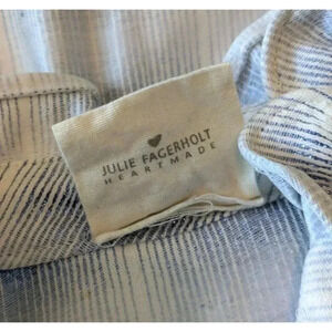 Julie Fagerholt Heartmade Tasky Blue Striped Metallic Top Size 40 Ruffle Smocked