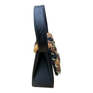 Julie Feldman Black Satin w/ Orange Rose Black Ribbon Rosettes Evening Handbag