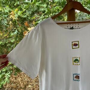 Julie Mango Vintage 90's White Vacation Theme T-Shirt Maxi Dress Size M