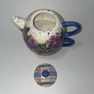 Julie Ueland tea for one 3 piece set floral teapot & cup vintage Enesco 1999 hydrangea plaid
