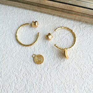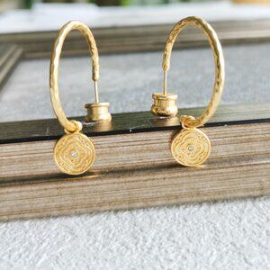 An effortlessly versatile orbital earring featuring a removable quatrefoil coin charm on a lightly hammered hoop.