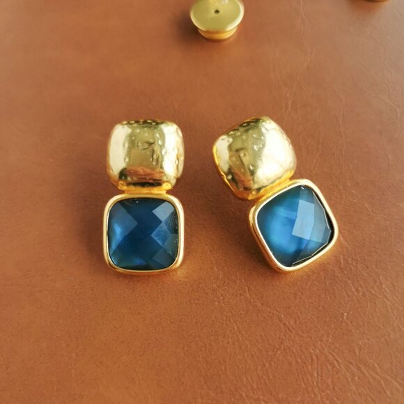 Julie Vos Catalina Gold Iridescent Blue Earrings