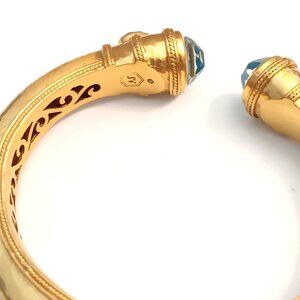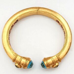 Julie Vos Cuff Hinged Bangle Bracelet Gold Plated & Turquoise Blue Glass Stone