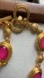 This stunning necklace features vibrant pink gemstones set in a luxurious gold design. Perfect for adding a touch of elegance to any outfit.