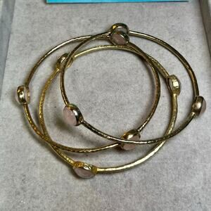 Julie Vos gold tone bangle bracelet set with rose quartz stones