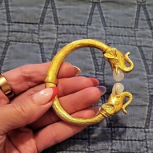 Julie Vos Gold and White Elephant Bangle Bracelet