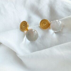 This hoop's hand-hammered golden bands softly glint and glimmer in the light.