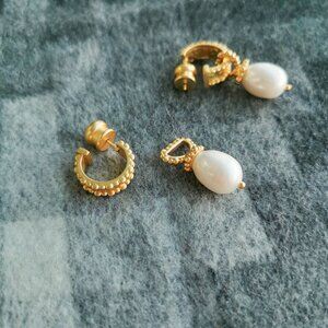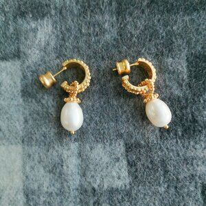 Julie Vos Marbella Gold Pearl Hoop & Charm Earrings BRAND NEW