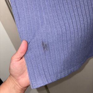 Please note there is a small stain on the front bottom left side about the size of a quarter (see photos). It did not come out with Shout, but an avid stain remover may be able to lift it—or you can easily disguise it by tying a side knot for a trendy look. Otherwise in great preowned condition and still a stylish, wearable piece.