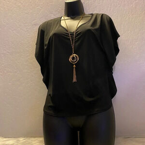 🆕 Julie’s Closet Black Blouse with Accent Necklace