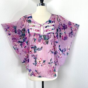 Julies Closet Lavender Chiffon Sheer Blouse Med Batwings Whimsy Fairy Boho Angel
