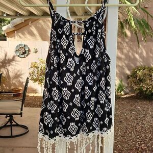Julie's Closet women's large black white fringed boho spaghetti strap cr…