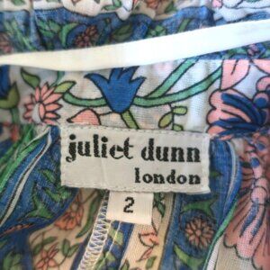 JULIET DUNN BLOUSON TIE-WAIST MINI DRESS WHITE ROSE BORDER PRINT COTTON SIZE 2