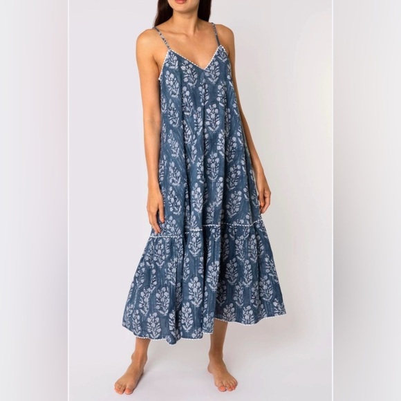 Juliet Dunn Long Swing Dress Midnight Small Flower Block Print Size Large NWOT