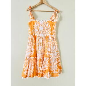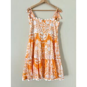 Juliet Dunn Orange Creamsicle Dress Summer A-Line Mini Tie Strap Small Scalloped